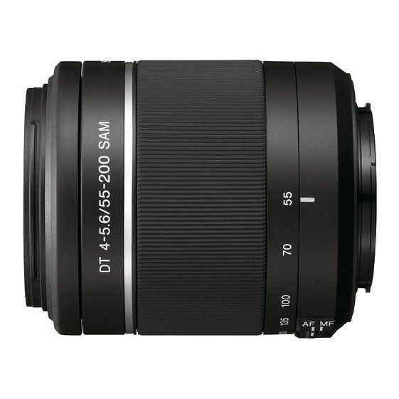 El 55-200mm f / 4.0-5.6 DT Alpha A-Mount Objetivo Telefoto Zoom de Sony es un DT de la serie de la lente Sony Alpha que ha sido optimizado para los sensores de imágenes recortadas, y como resultado, no se recomienda para su uso con mayor completo cámaras de marco. Es la distancia focal de 55-200mm es el equivalente de 35 mm de un teleobjetivo 82.5-300mm larga. Está construido con 13 elementos en 9 grupos, así como dispersión extra baja (ED), que ayudan a entregar fotografías nítidas y claras en toda la gama zoom. Tiene una distancia de enfoque mínima de 3.2 "y un diámetro de filtro de extremo delantero de 55mm.