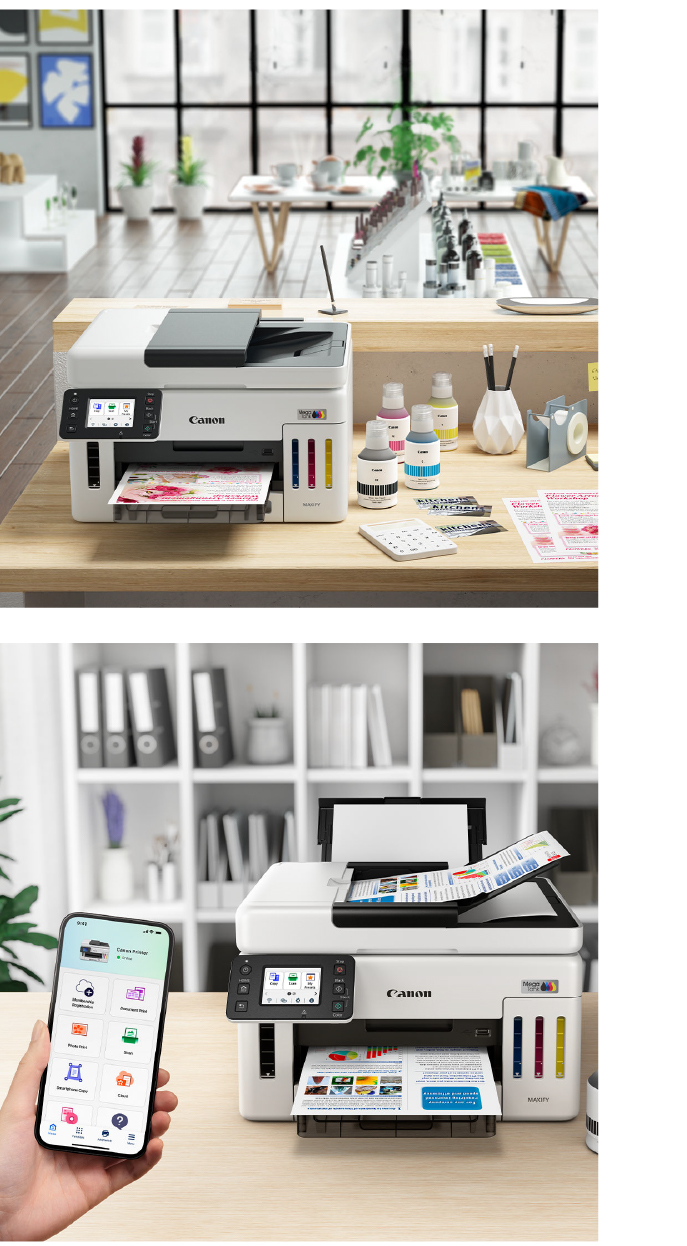 La Canon MAXIFY GX6110 es una impresora multifuncional de alto rendimiento diseñada para satisfacer las exigencias de oficinas pequeñas y medianas. Gracias a su sistema de tinta continua (MegaTank) y su elevado rendimiento por juego de tintas, ofrece una solución rentable para quienes requieren imprimir grandes volúmenes con calidad profesional. Con funciones de impresión, copia, escaneo, conectividad inalámbrica y diseño compacto, la GX6110 combina eficiencia, facilidad de uso y ahorro operativo, convirtiéndose en una aliada ideal para flujos de trabajo intensivos.