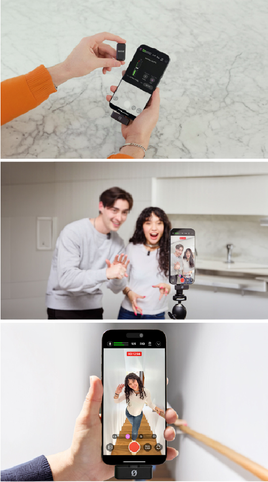 Este sistema elimina la complejidad técnica del audio inalámbrico. No requiere emparejamientos manuales ni configuraciones avanzadas: los micrófonos y el receptor se conectan automáticamente, permitiendo comenzar a grabar en cuestión de segundos. Es una solución perfecta para creadores que necesitan rapidez, confiabilidad y cero interrupciones en su flujo de trabajo.