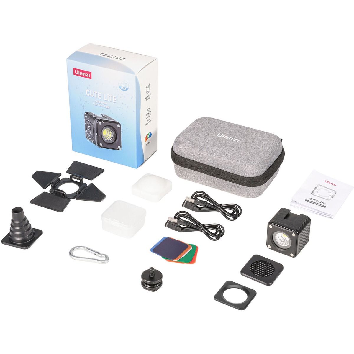 La Mini Lámpara Ulanzi de Luz Led Impermeable CUTE LITE L2 proporciona iluminación clave o de relleno para sus selfies, aventuras submarinas o tomas de productos. Resistente al agua hasta 33', esta luz cúbica compacta cuenta con una temperatura de color de 5500K, atenuación de cuatro niveles y montaje magnético y accesorios. Su batería integrada de 300 mAh proporciona de 60 a 240 minutos de luz y se carga a través de un cable de carga magnético.