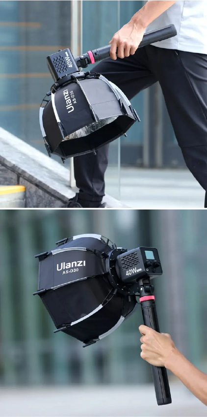 El Ulanzi AS-D30 es un softbox octagonal de 30 cm diseñado para ofrecer una iluminación suave, uniforme y profesional en cualquier entorno. Ideal para fotografía de retrato, producto o creación de contenido, combina portabilidad, facilidad de uso y un excelente control de la luz. Su diseño compacto con montura Mini Bowens lo convierte en el aliado perfecto para luces LED COB y setups móviles sin sacrificar calidad.