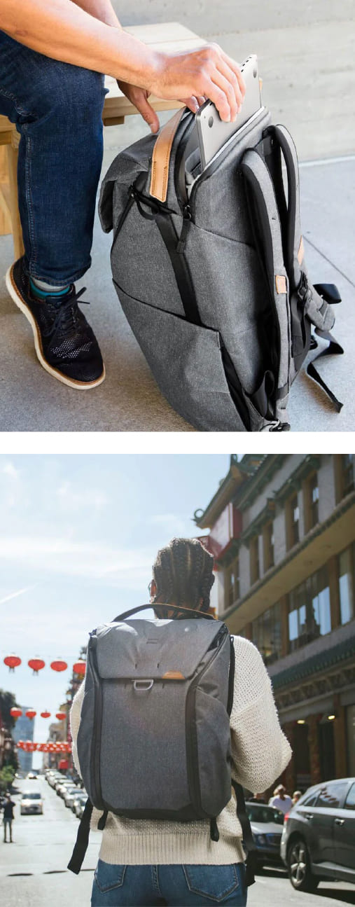 Cada espacio dentro de la Everyday Backpack V2 está pensado estratégicamente. Incluye un compartimento acolchado para laptop de hasta 16” y tablet, con acceso independiente para agilizar los controles en aeropuertos o la edición en campo. Sus bolsillos internos elásticos mantienen organizados cables, tarjetas de memoria, baterías y objetos personales. Además, dispone de puntos de anclaje ocultos y correas externas para fijar un tripié, una chaqueta o incluso un dron compacto, adaptándose a tu estilo de trabajo.