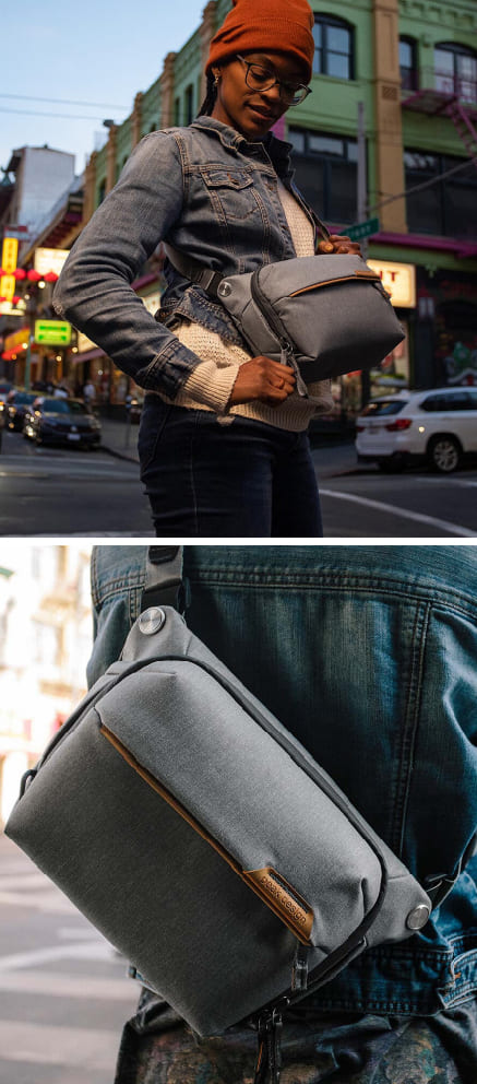 La Everyday Sling V2.0 Ash de Peak Design es una cangurera versátil y compacta diseñada para fotógrafos y creadores de contenido que buscan transportar su equipo de manera segura y cómoda. Su diseño permite llevarla sobre la cintura o como bandolera, con acceso rápido a todos tus accesorios. Ideal para sesiones urbanas, viajes cortos o cualquier situación en la que necesites tener tu equipo siempre a la mano.