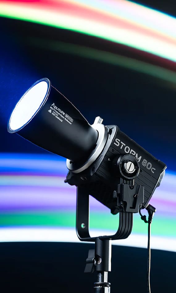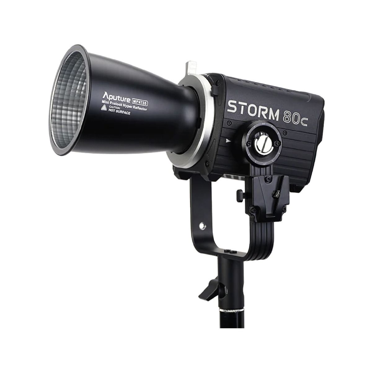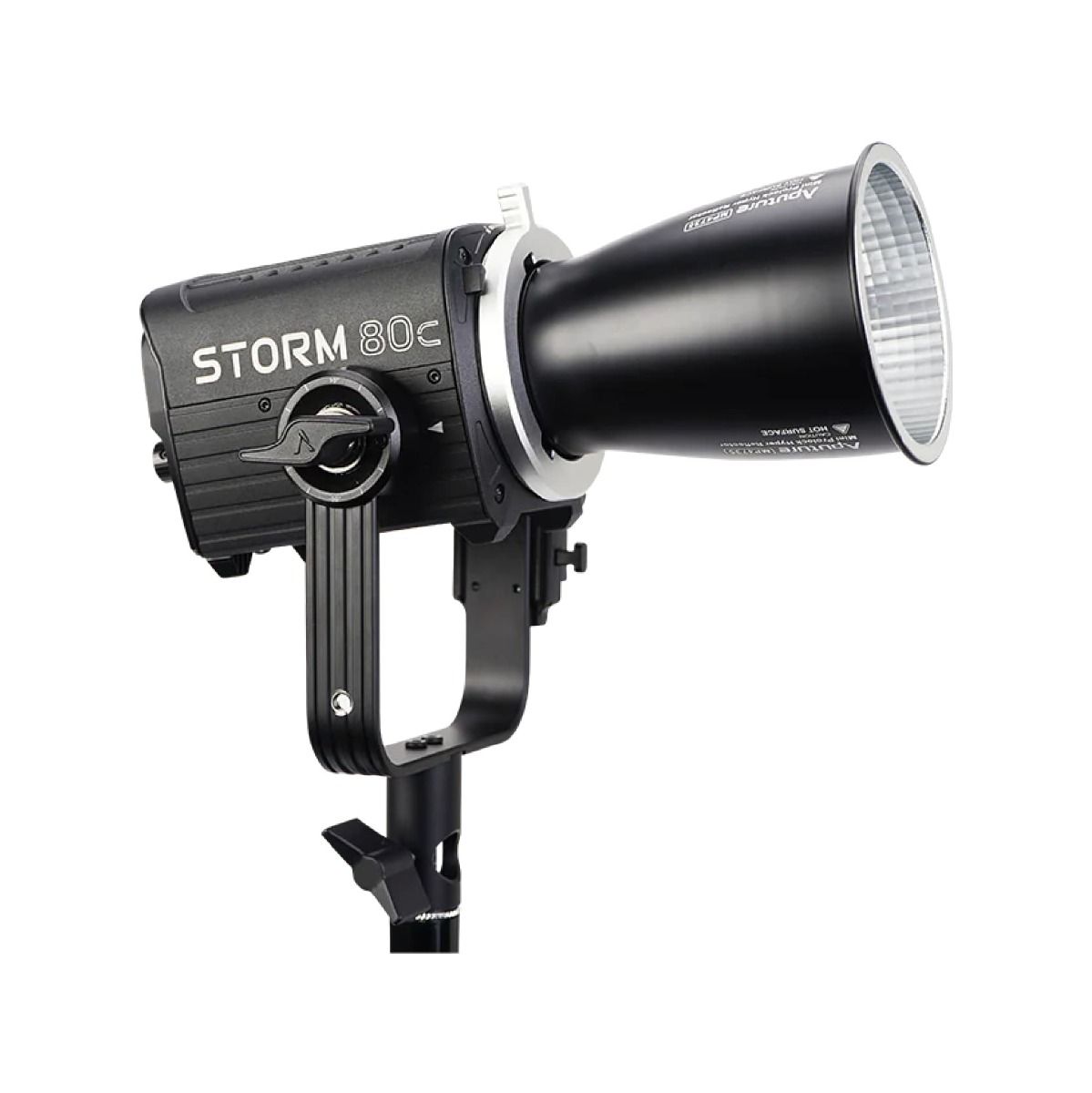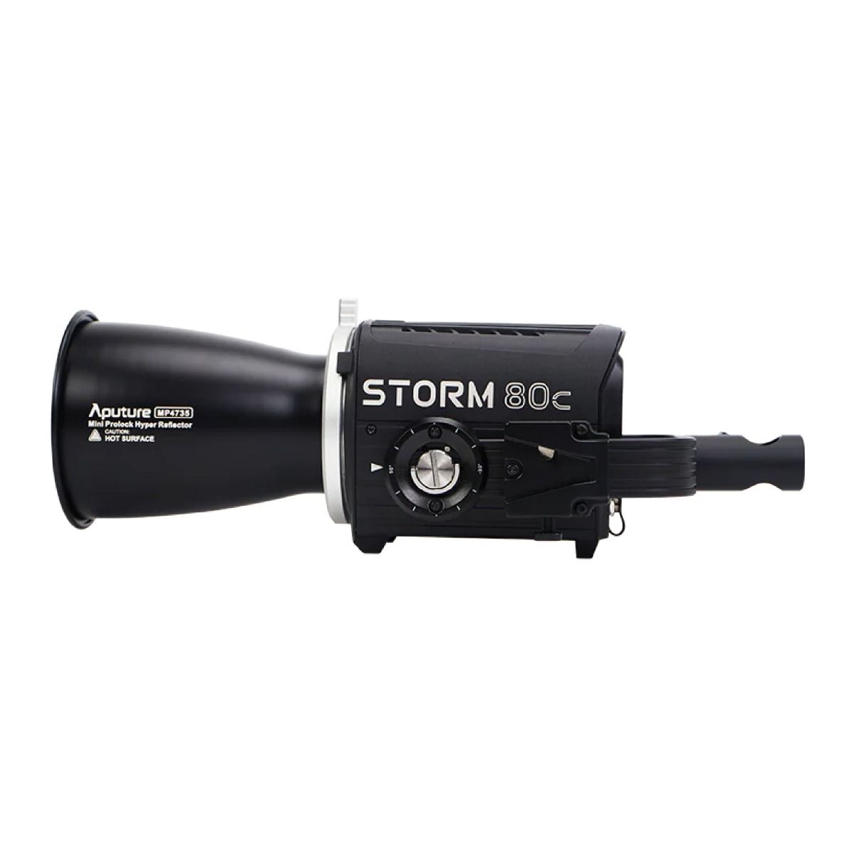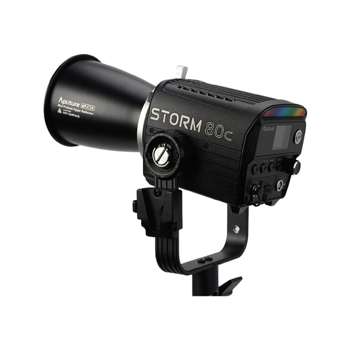 Con dimensiones de aproximadamente 6″ × 4″ × 4″ y un peso de solo 1 kg, el STORM 80c es una herramienta ligera y fácil de transportar. Su cuerpo con certificación IP65 lo protege del polvo y salpicaduras, garantizando un rendimiento confiable tanto en estudio como en exteriores. Además, cuenta con múltiples puntos de montaje y un yugo removible para adaptarse a cualquier configuración de rodaje.