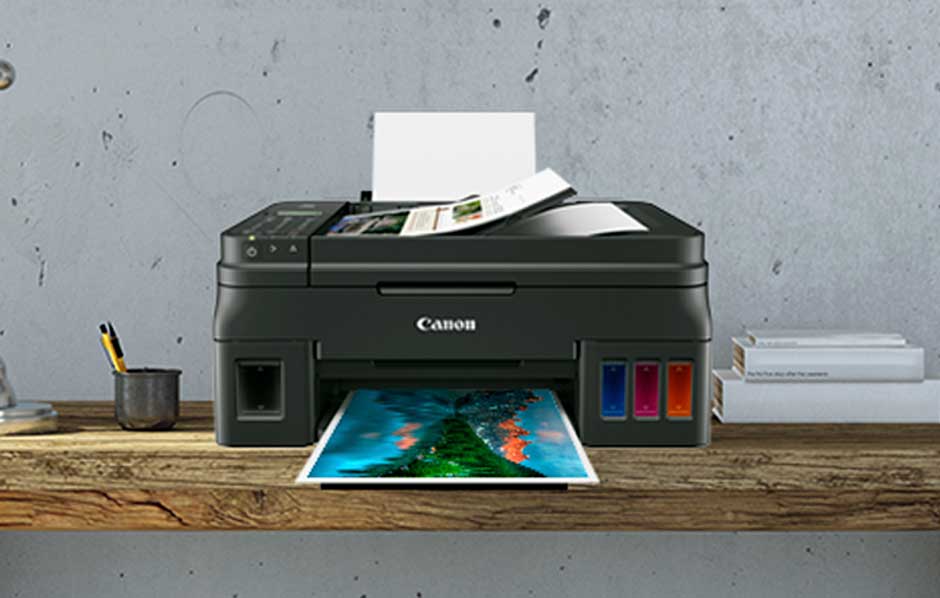 La impresora PIXMA G4110 combina tintas a base de tintes para lograr colores vivos.