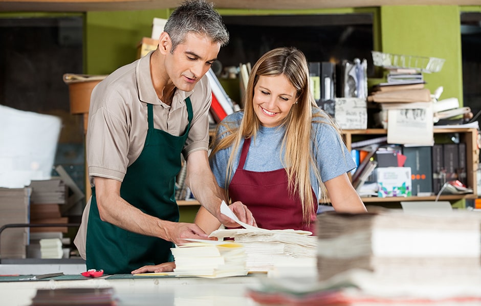 Imprime en material en serie para promocionar el negocio. Hasta 8.8 imágenes por minuto (IPM) en negro y 5.0 IPM en color.