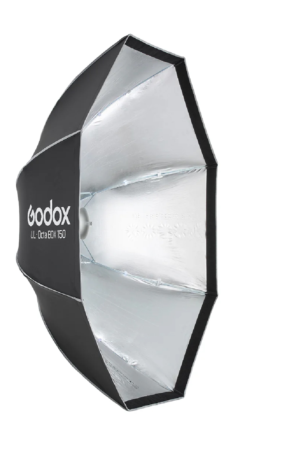 El difusor interno elimina los puntos calientes de la fuente de luz, el difusor externo crea una iluminación uniforme y el deflector central desmontable convierte al octabox en una alternativa al beauty dish, logrando un efecto más dramático y con carácter.