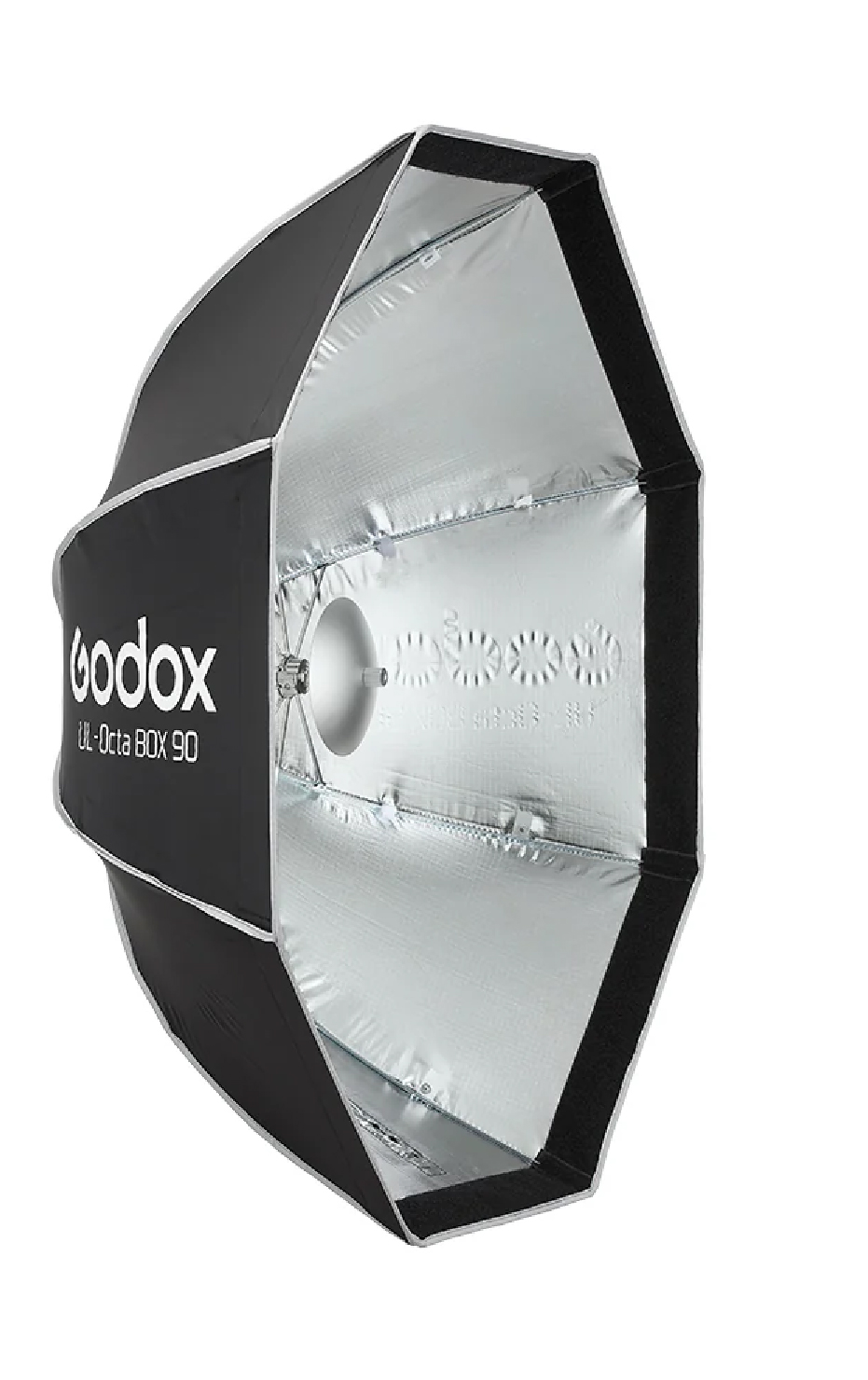 El difusor interno elimina los puntos calientes de la fuente de luz, el difusor externo crea una iluminación uniforme y el deflector central desmontable convierte al octabox en una alternativa al beauty dish, logrando un efecto más dramático y con carácter.