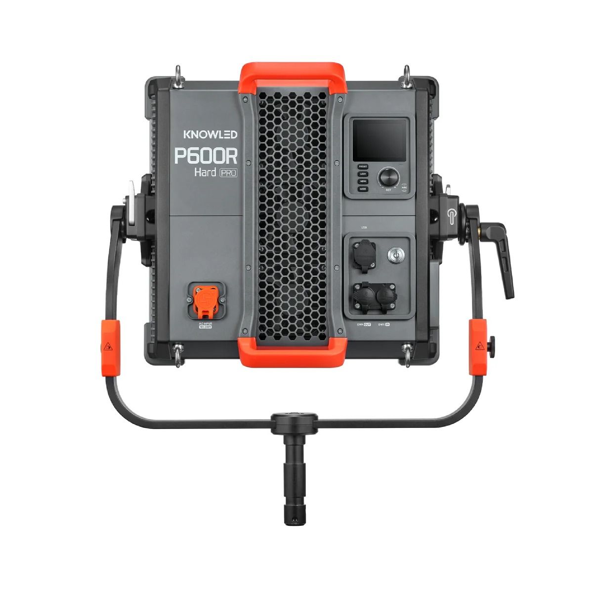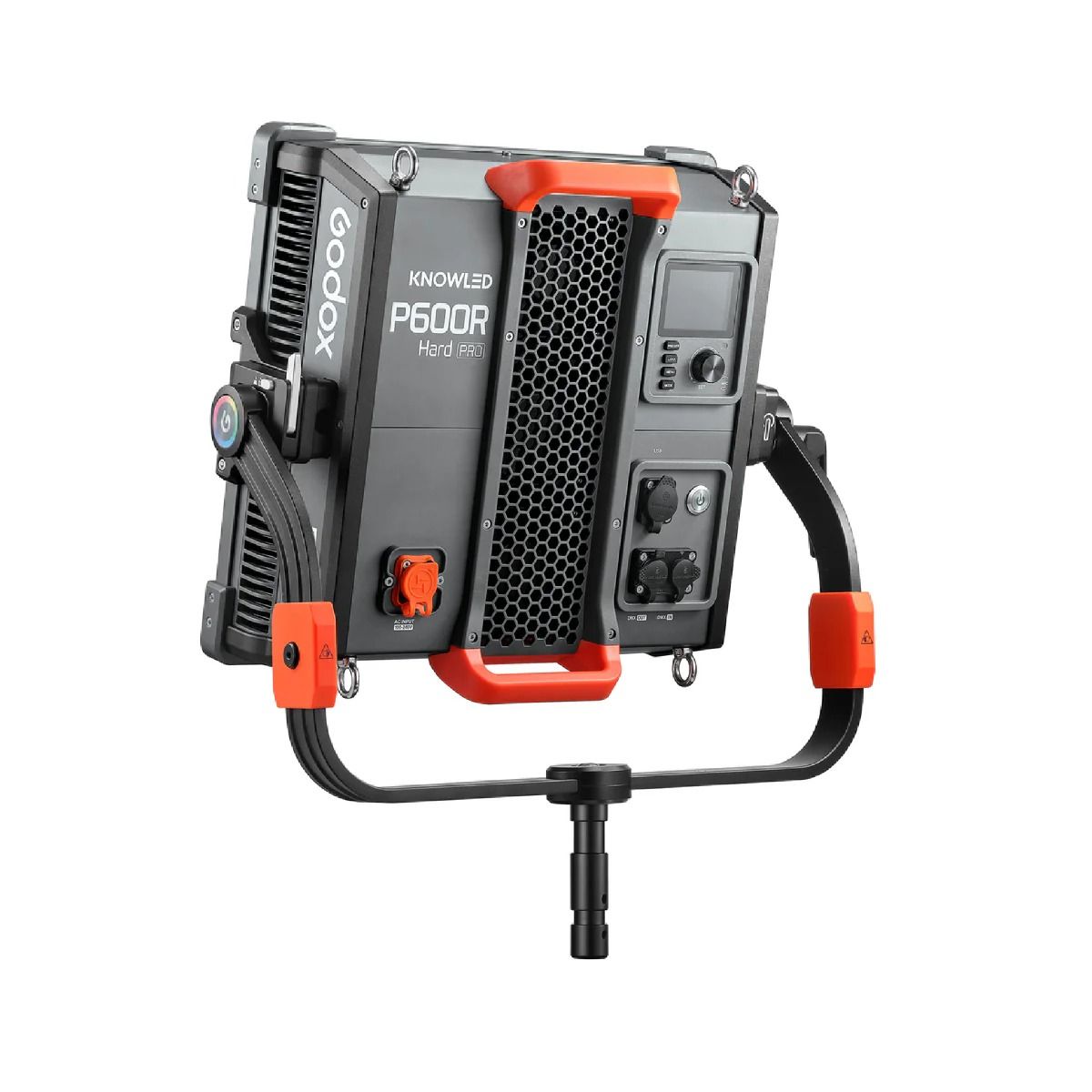 Incluye soporte tipo yugo, cuerda de seguridad y puerto USB-A para futuras actualizaciones. Compatible con todos los accesorios del sistema P600R Hard, como softboxes, grids y difusores, ofreciendo versatilidad y escalabilidad para distintos proyectos.