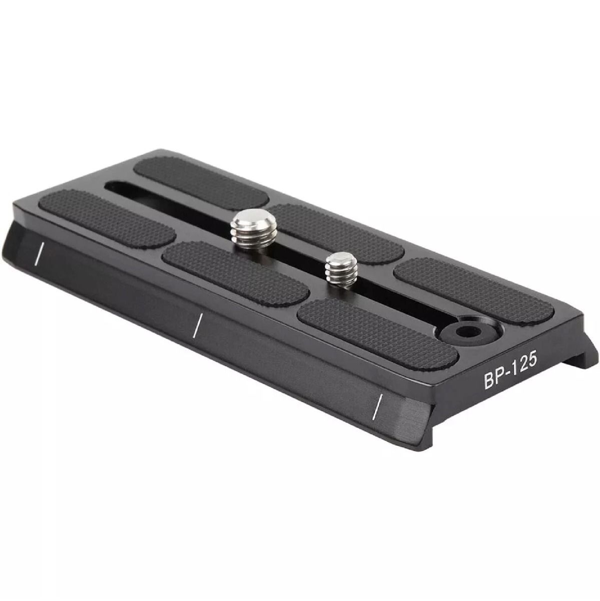 Con dimensiones de aproximadamente 125 × 50 × 12 mm y un peso cercano a 88 g, la BP-125 ofrece una base amplia que mejora la estabilidad al montar cámaras y lentes de distintos tamaños. Sus superficies con goma antideslizante evitan movimientos indeseados y aseguran un ajuste firme.