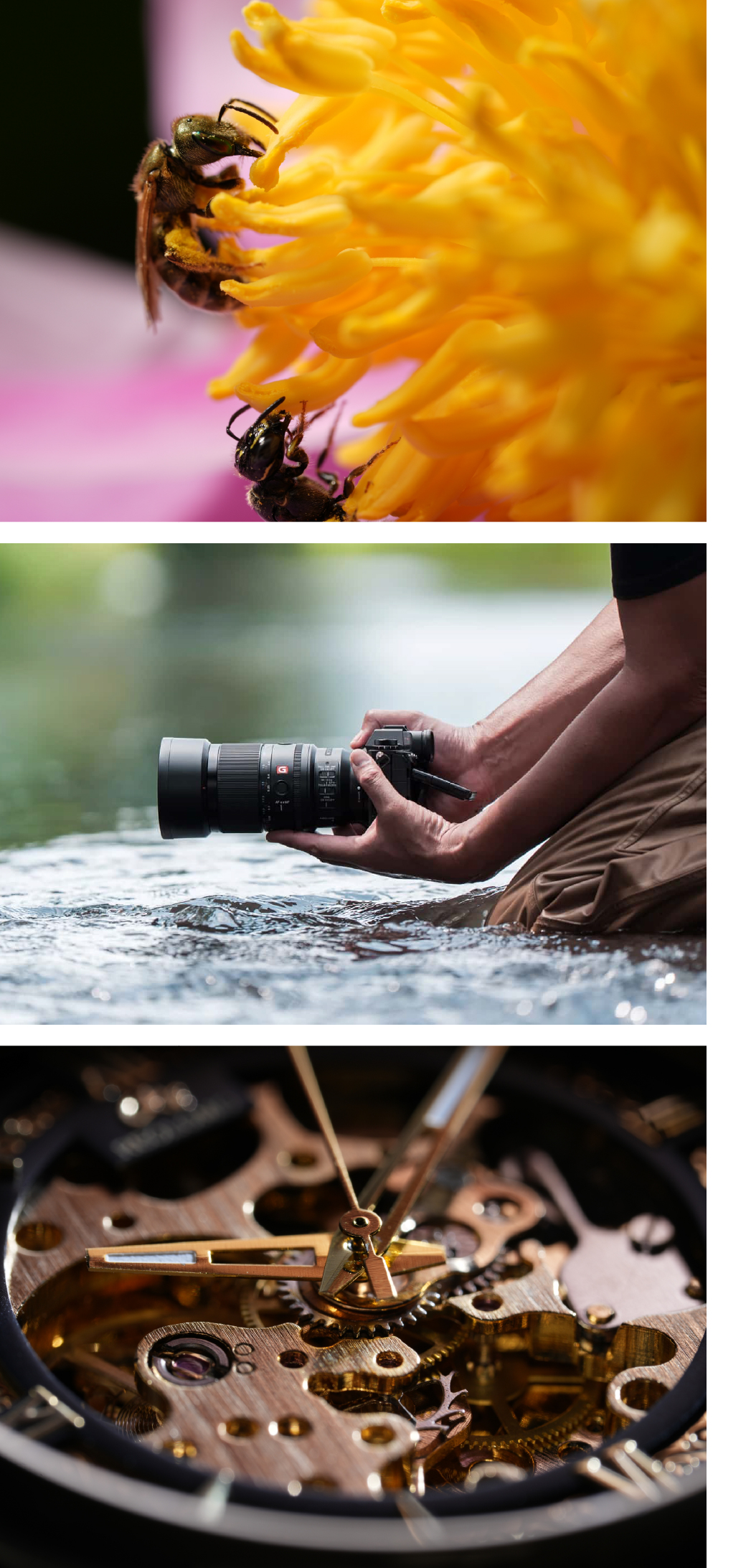 El FE 100 mm f/2.8 STF GM OSS no solo es ideal para retratos, también permite acercamientos macro con una ampliación de hasta 1,4×. Esto significa que puedes capturar detalles muy pequeños con una nitidez asombrosa, desde texturas de flores hasta estructuras diminutas. Si se combina con un teleconvertidor compatible, la ampliación puede alcanzar hasta 2,8×, ampliando las posibilidades creativas para fotografía de naturaleza, producto o arte.