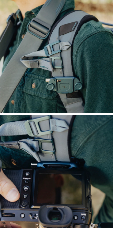 El Capture V3 mantiene tu cámara firmemente sujeta al arnés o cinturón, evitando movimientos incómodos al caminar, correr o escalar. Esto te permite mantener las manos libres sin comprometer la seguridad de tu equipo.