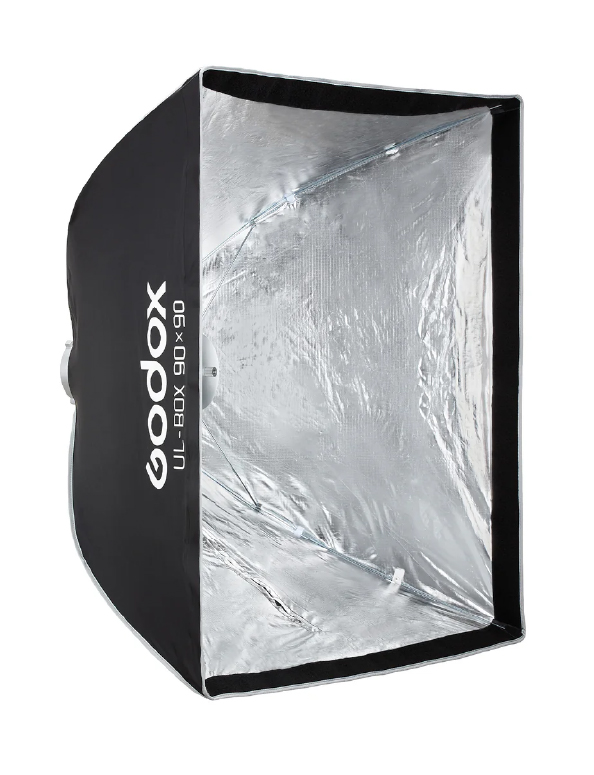 Con 90x90 cm de superficie, este softbox es perfecto para iluminar personas completas, moda, productos o retratos en estudio, sin perder control sobre la intensidad o la dirección de la luz.
