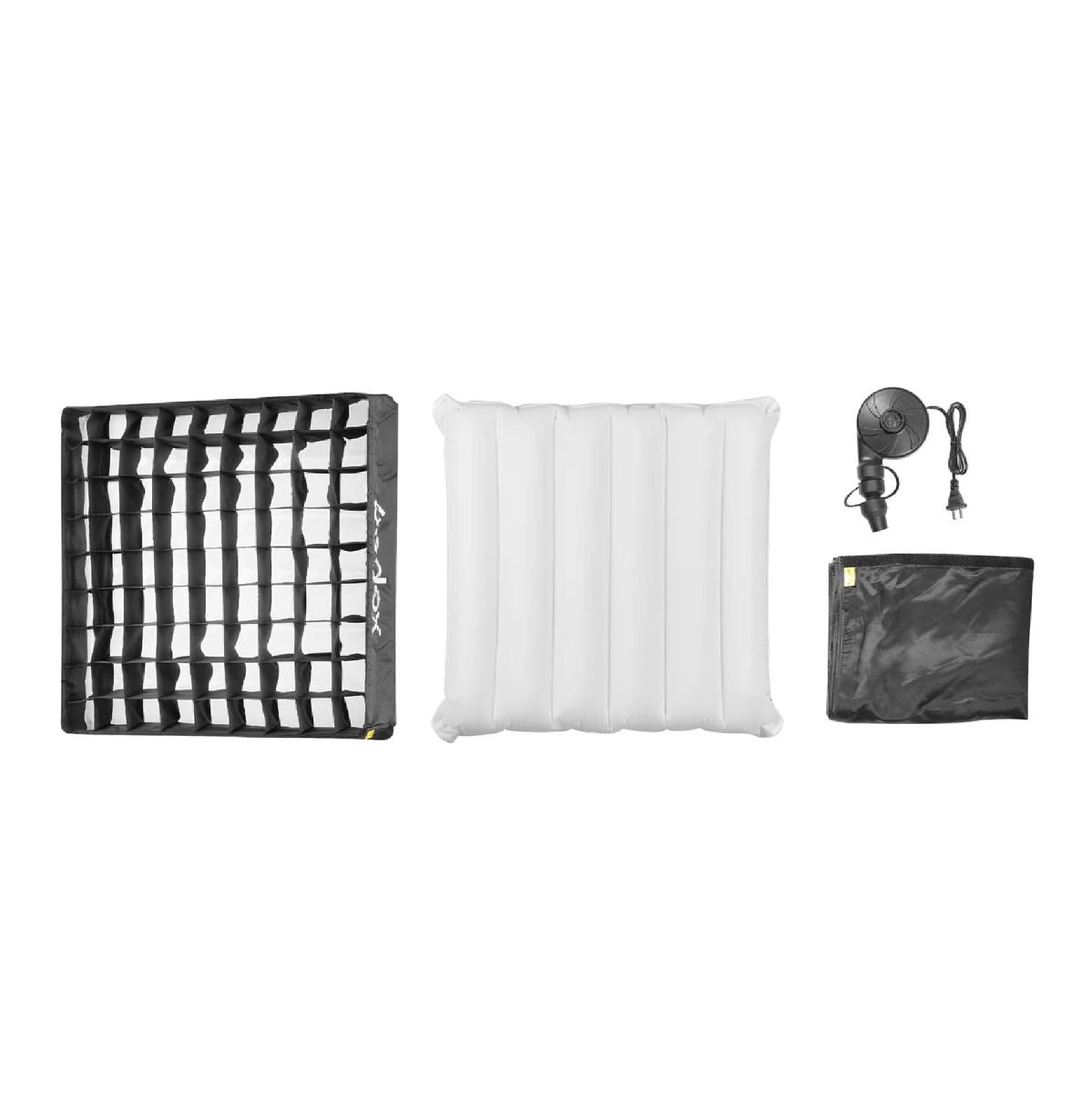 A diferencia de los softboxes tradicionales, este modelo utiliza una estructura inflable que permite montarlo en cuestión de segundos. Incluye una bomba eléctrica que facilita el inflado y asegura una forma estable y uniforme, agilizando el flujo de trabajo en cualquier sesión de producción.