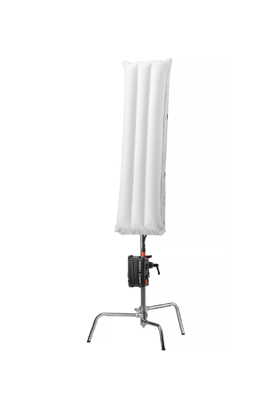Gracias a su estructura inflable, el softbox puede montarse en pocos minutos utilizando la bomba electrónica incluida. Este sistema simplifica el proceso de armado y permite tener el equipo listo rápidamente, incluso en producciones con tiempos ajustados.