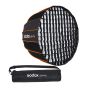 El Softbox Parabólico Godox QR-P70G Liberación Rápida con Grid Montura Bowens 70 cm es un modificador de luz de 16 lados que ofrece una salida de luz suave y enfocada.