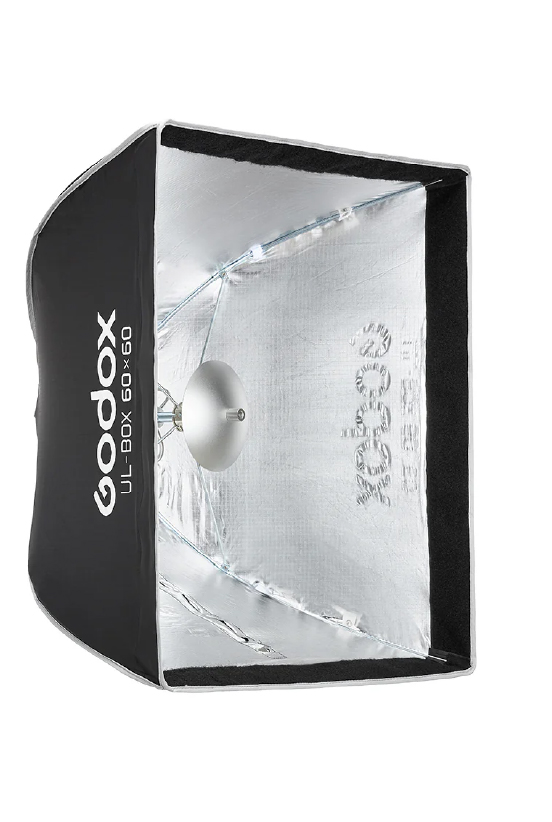 El interior plateado reflectante potencia la luz y suaviza sombras, mientras que su forma cuadrada de 60×60 cm proporciona una iluminación uniforme y sin puntos calientes. Ideal para retratos, moda, producto y grabaciones en video.