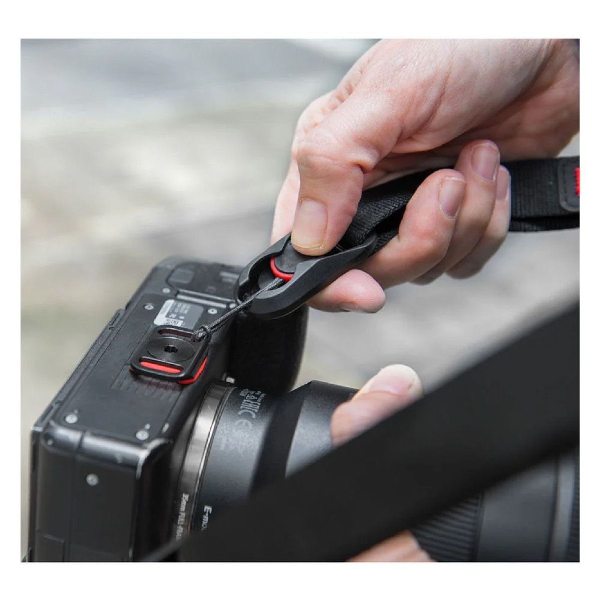 Este anclaje es totalmente compatible con cualquier correa de Peak Design, desde modelos de hombro hasta de cuello y cruzadas. Esto te da la libertad de personalizar tu forma de llevar la cámara según tu estilo o tipo de sesión fotográfica, cambiando correas o adaptando el sistema a diferentes cámaras sin complicaciones.