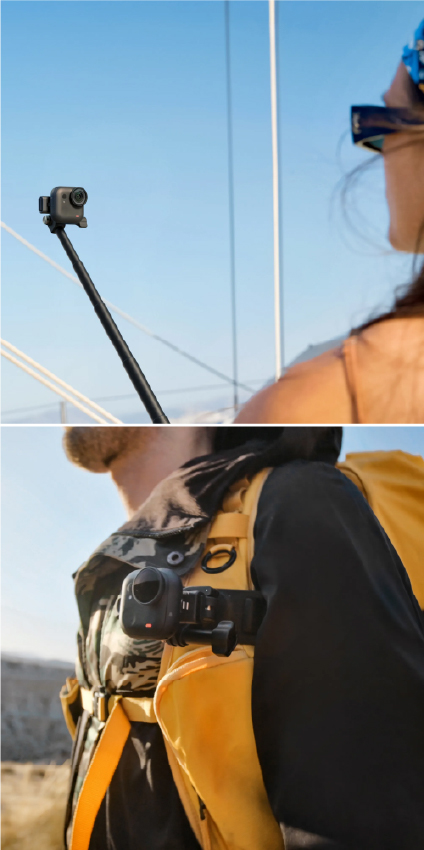Incluye un adaptador de dos puntas con un ángulo cuidadosamente diseñado para ofrecer mayor flexibilidad en la composición de tus tomas. Facilita la captura de planos creativos, selfies, tomas en primera persona o ángulos dinámicos sin necesidad de accesorios adicionales.