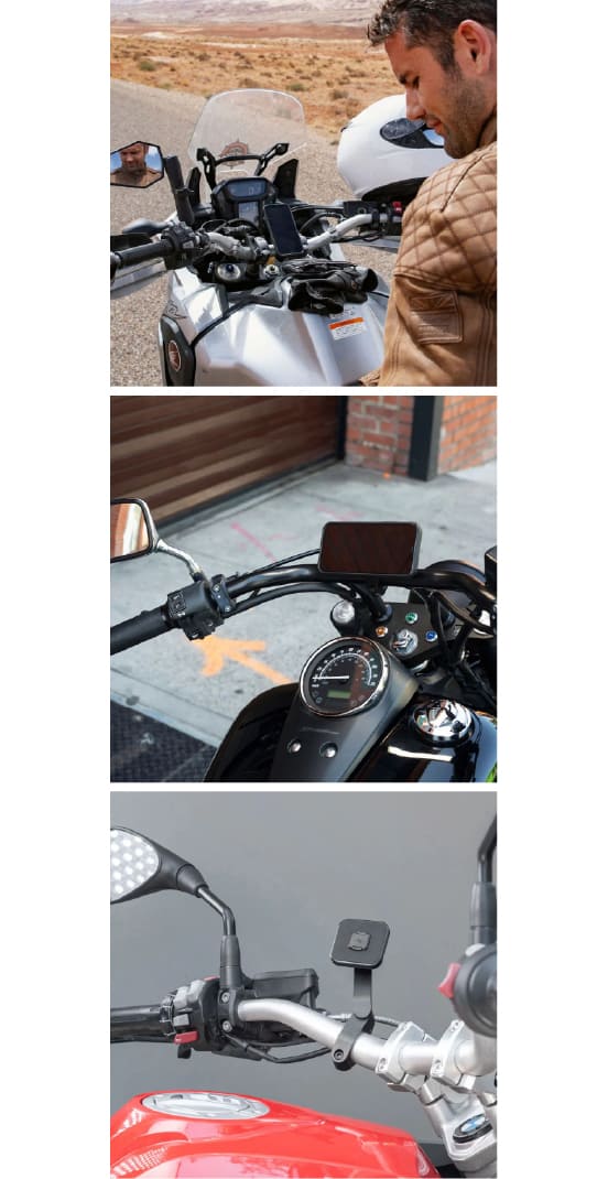 El soporte está diseñado para adaptarse a casi cualquier motocicleta gracias a sus collares intercambiables, compatibles con barras de 7/8" hasta 1,25" de diámetro. Su sistema de instalación es rápido y seguro, asegurando que tu celular quede firme incluso en recorridos irregulares o a altas velocidades. Además, su brazo de montaje ofrece hasta 24 posiciones ajustables, permitiéndote encontrar el ángulo de visión perfecto, ya sea que necesites ver mapas, notificaciones o simplemente tu pantalla de forma cómoda mientras conduces.