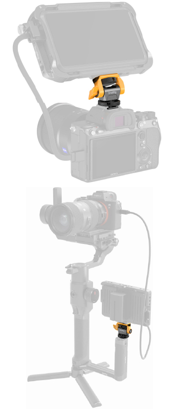 El soporte se instala fácilmente mediante una zapata fría, lo que permite un montaje rápido en cámaras, jaulas o rigs profesionales. Esta versatilidad facilita cambios ágiles en el set de grabación, manteniendo un flujo de trabajo eficiente y ordenado.