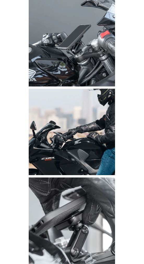 El soporte STEM integra un sistema innovador que combina fuerza magnética con un bloqueo mecánico seguro, lo que garantiza que tu celular permanezca firme en cualquier situación de conducción. La colocación y retiro del teléfono se realiza de manera rápida y con una sola mano, incluso si llevas guantes, eliminando la necesidad de ajustes complicados. Esto lo hace ideal para motociclistas que buscan funcionalidad sin comprometer la seguridad durante el manejo.
