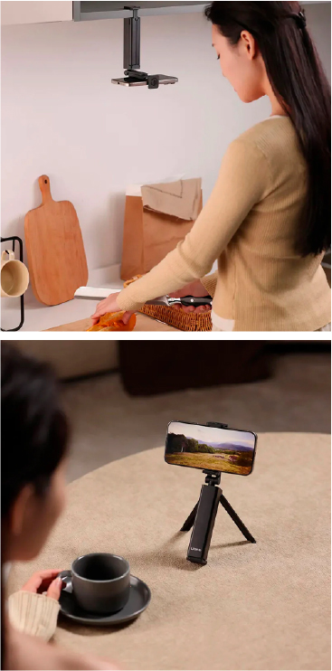 Gracias a su sistema de inclinación y ajuste, puedes posicionar tu smartphone en diferentes ángulos con facilidad. Esto te permite lograr encuadres más creativos, mejorar tus videollamadas o grabar contenido con mayor comodidad y precisión.