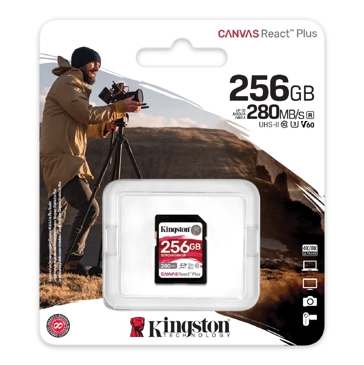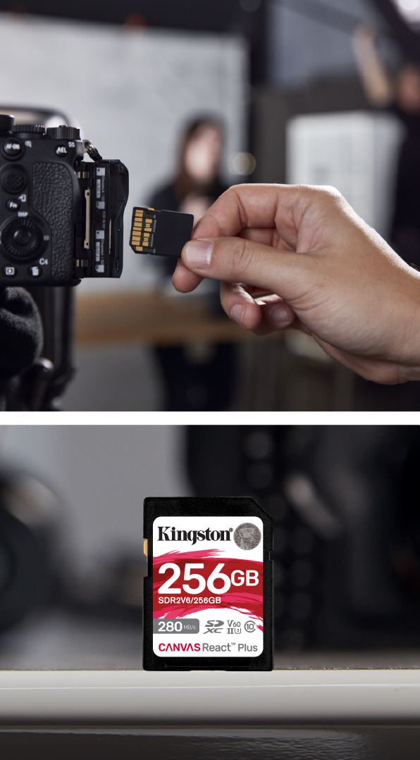 La Kingston Canvas React Plus V60 está diseñada para soportar grabaciones de alta calidad, especialmente en 4K UHD, sin que el flujo de datos se interrumpa. Su clasificación V60 asegura una velocidad mínima de escritura sostenida de 60 MB/s, lo que garantiza que el contenido se grabe de manera fluida, sin cortes en la imagen ni errores en el archivo. Esto la convierte en una tarjeta confiable para quienes trabajan con producciones audiovisuales donde no hay segundas tomas y la estabilidad es esencial.