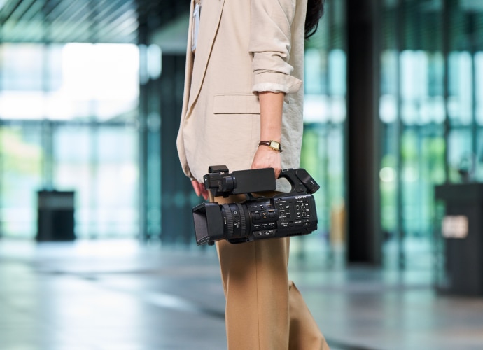 }Un magnífico lente G Lens™ con zoom electrónico de 20x lo cubre todo, desde entrevistas en automóviles con tomas en gran angular hasta primeros planos deportivos en teleobjetivo.