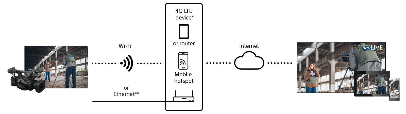 Desde noticias de último momento y eventos en vivo hasta entrevistas y seminarios, capture imágenes de alta calidad y compártalas en tiempo real a través de las principales plataformas de video digitales, como YouTube Live, Facebook Live, Mudu.tv y más.