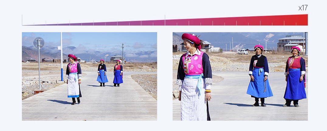 En modo HD, la imagen se puede amplificar hasta un tamaño equivalente al de una imagen ampliada 34 veces con zoom y mantener la resolución Full HD gracias al extensor digital.